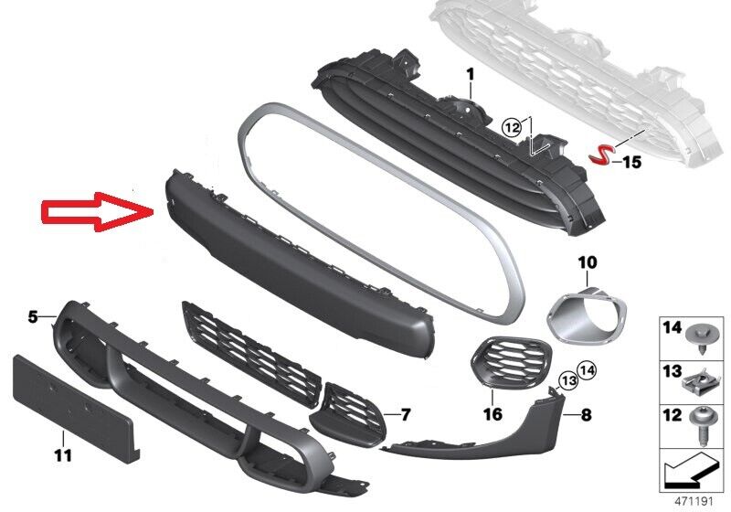 Genuine Mini JCW Cooper S F55 F56 F57 (14-19) Front Bumper Trim Assy 51117337791