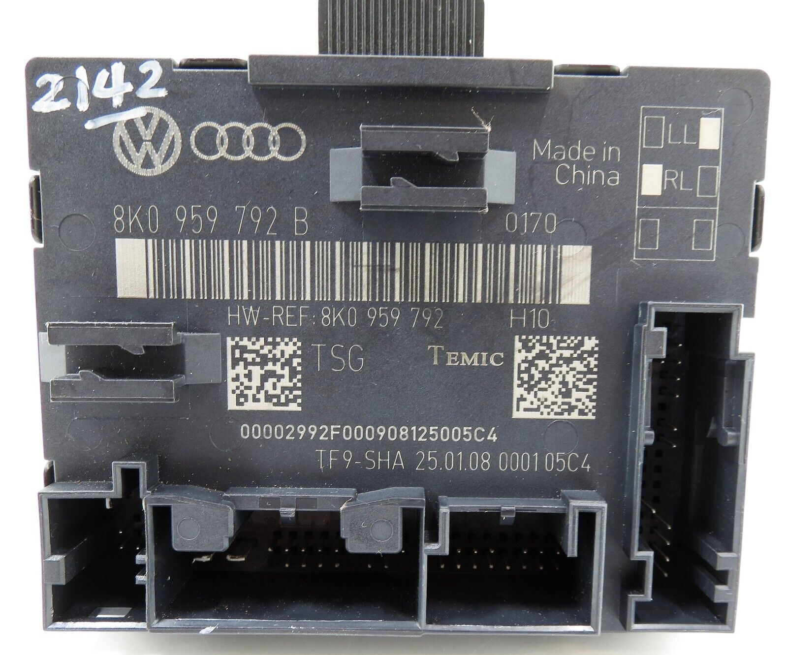 â–“ Stock Ref: 2142 (8K0959792B Genuine Audi A4 A5 8K Front Door Control Module TSG H10 Temic China)