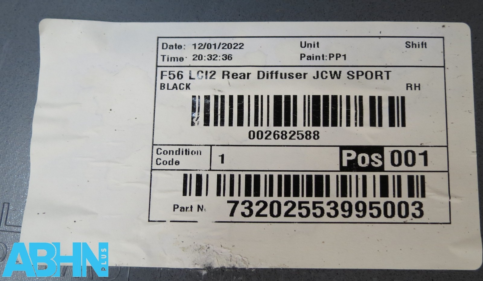 9450835 Mini Cooper S Sport JCW LCI2 F56 20^ Rear Bumper Diffuser 4 PDC Fog V321