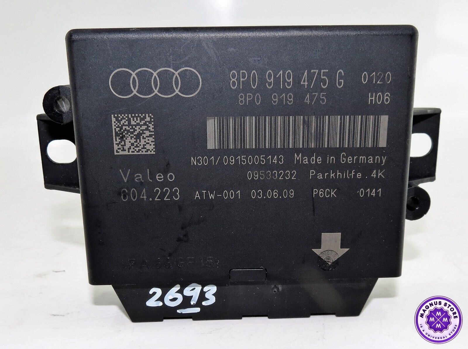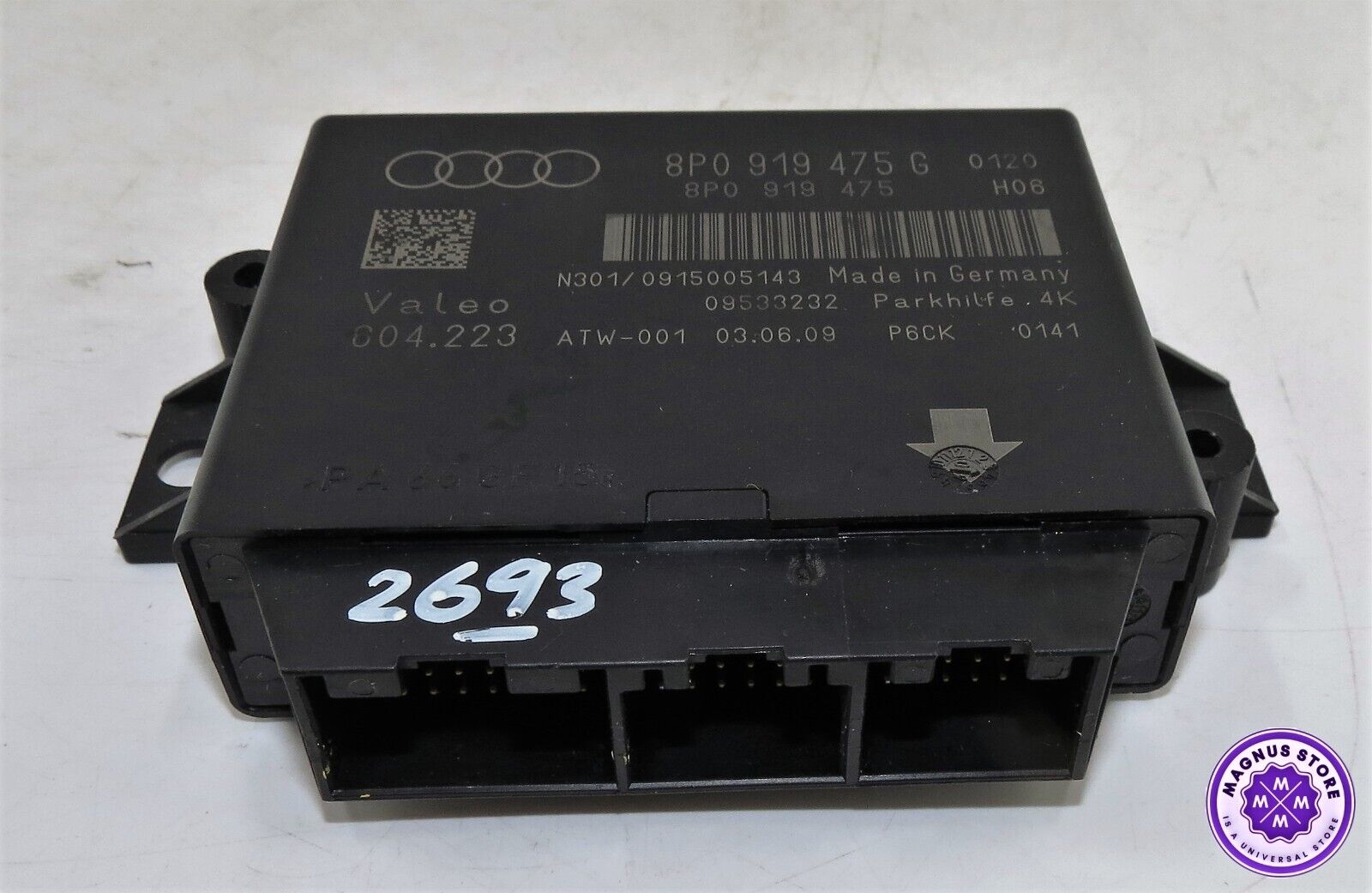 â–“ Stock Ref: 2693 (Genuine Audi A3 8P TT /03-13 Parking Aid PDC Control ECU Module 8P0919475G Valeo 604.223)