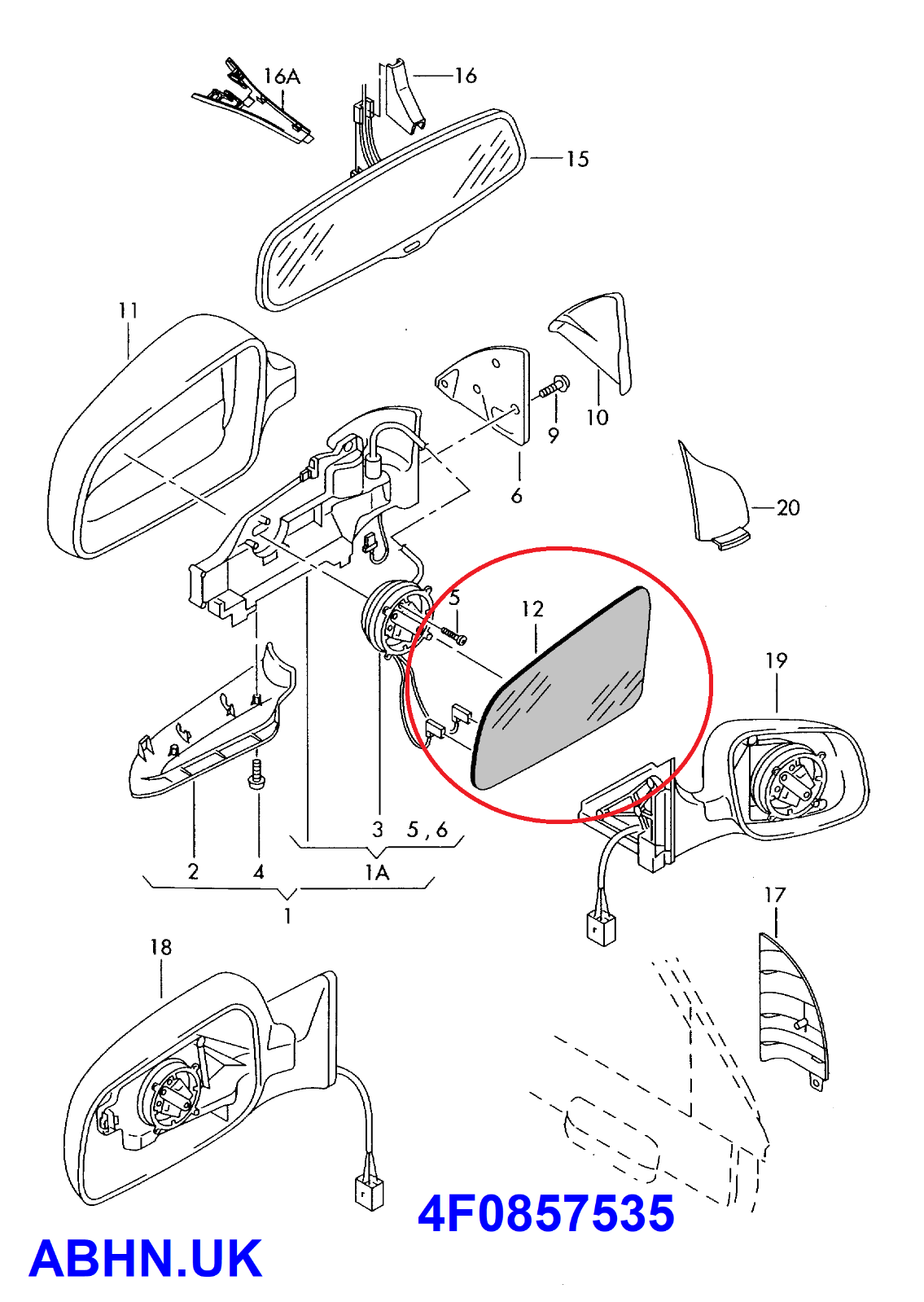 Audi A4 (01-08) A6 (05-08) Right Auto Dimming (Flat) Door Mirror Glass 4F0857536