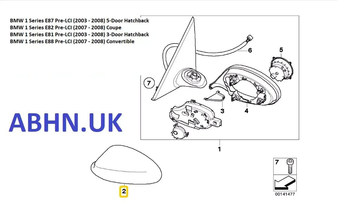 BMW 1 Series E87 E81 E88 E82 (04-08) Right Door Mirror Cover A3330438 Met Silver
