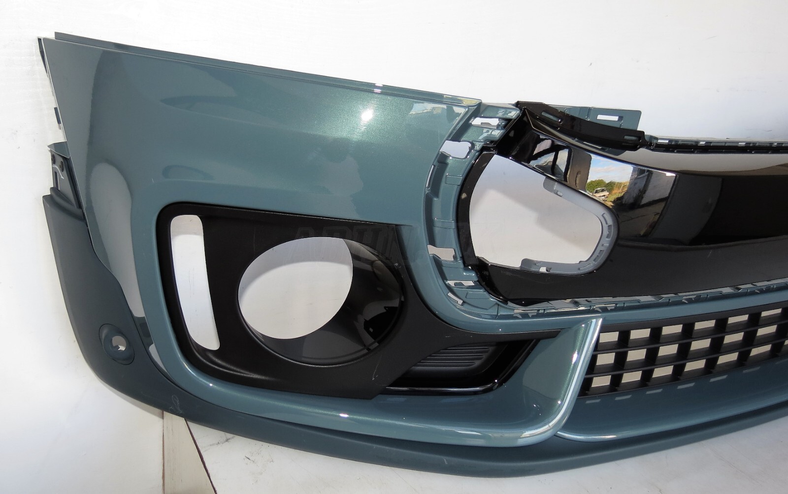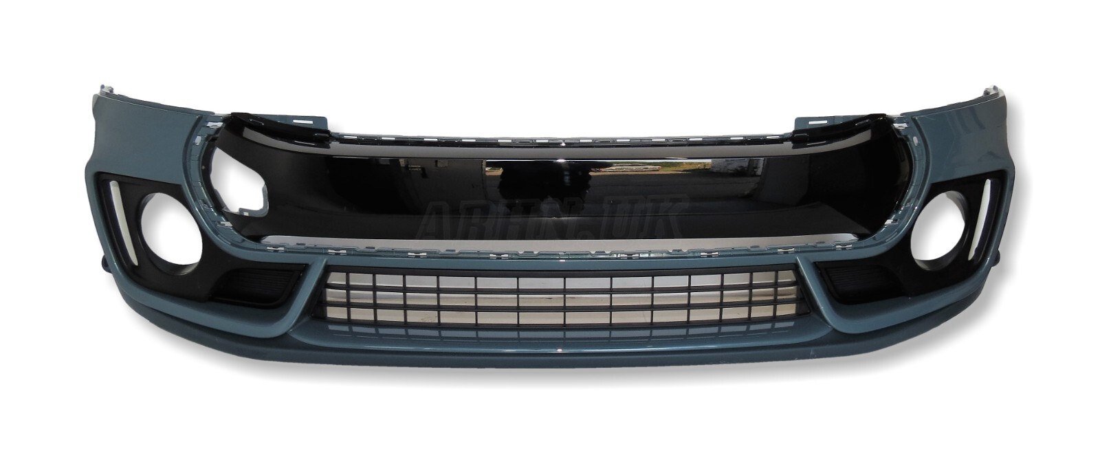 Front Complete Bumper finished in Grey, 2 PDC holes, Eye Towing Cover not included. Cooper S Classic and Executive Variants signature comes with S Badge, Two Lower Sided Blocked Air Duct and Open Sided Vents near the Fog light. The Trim surround finished in Gloss Black.