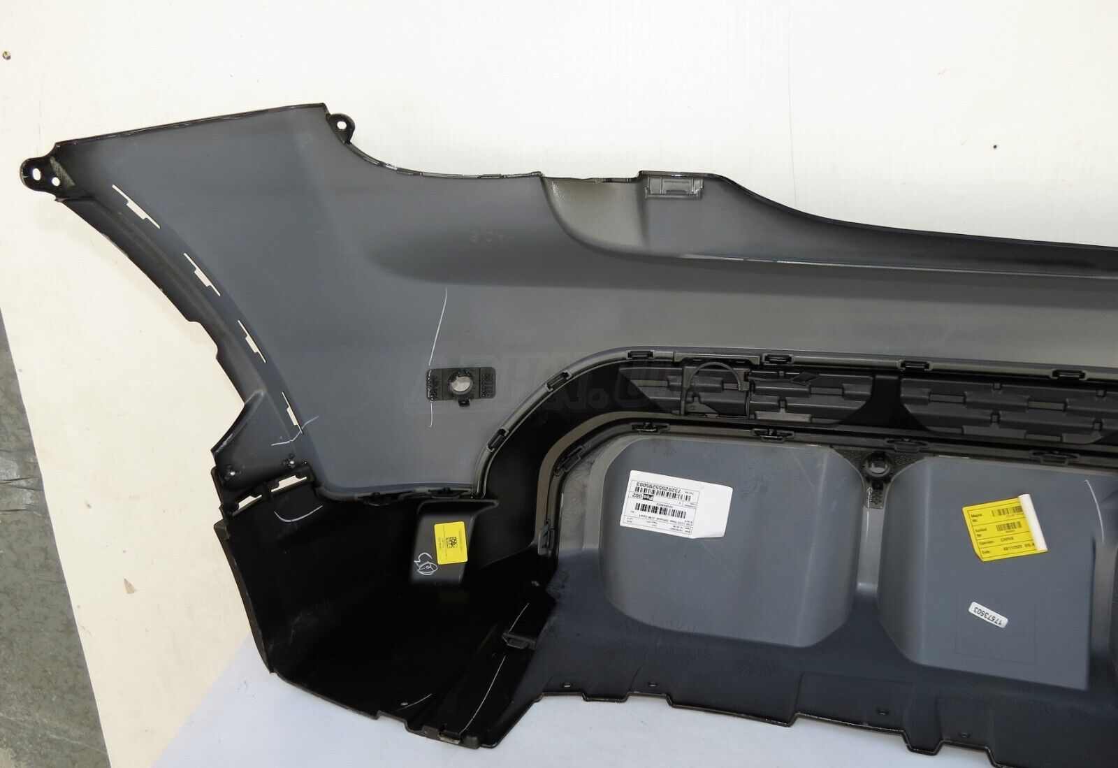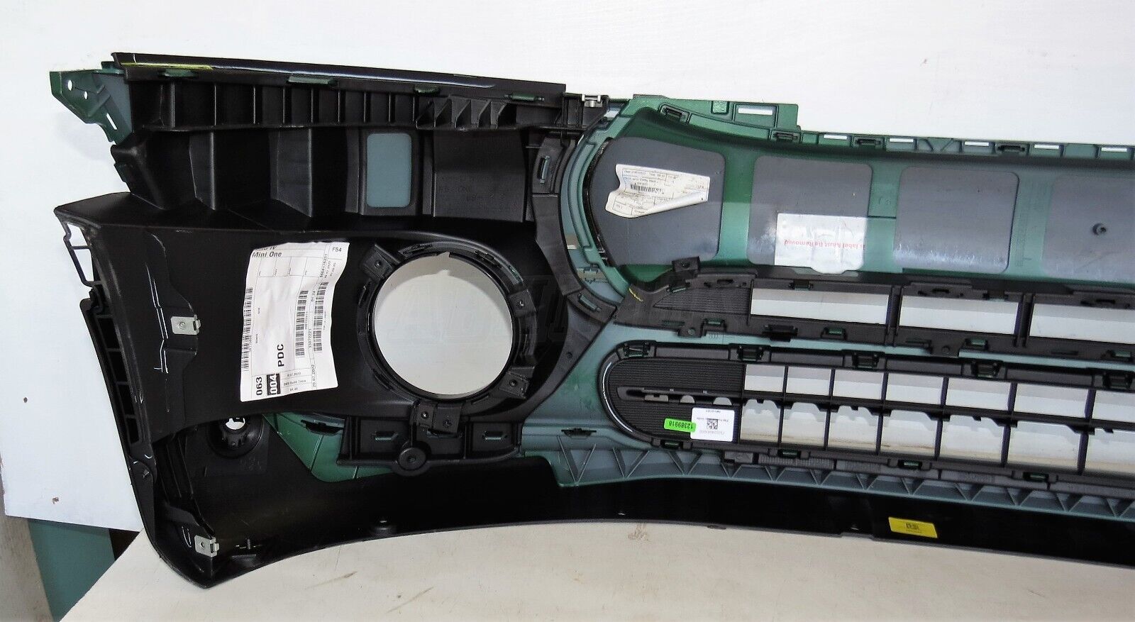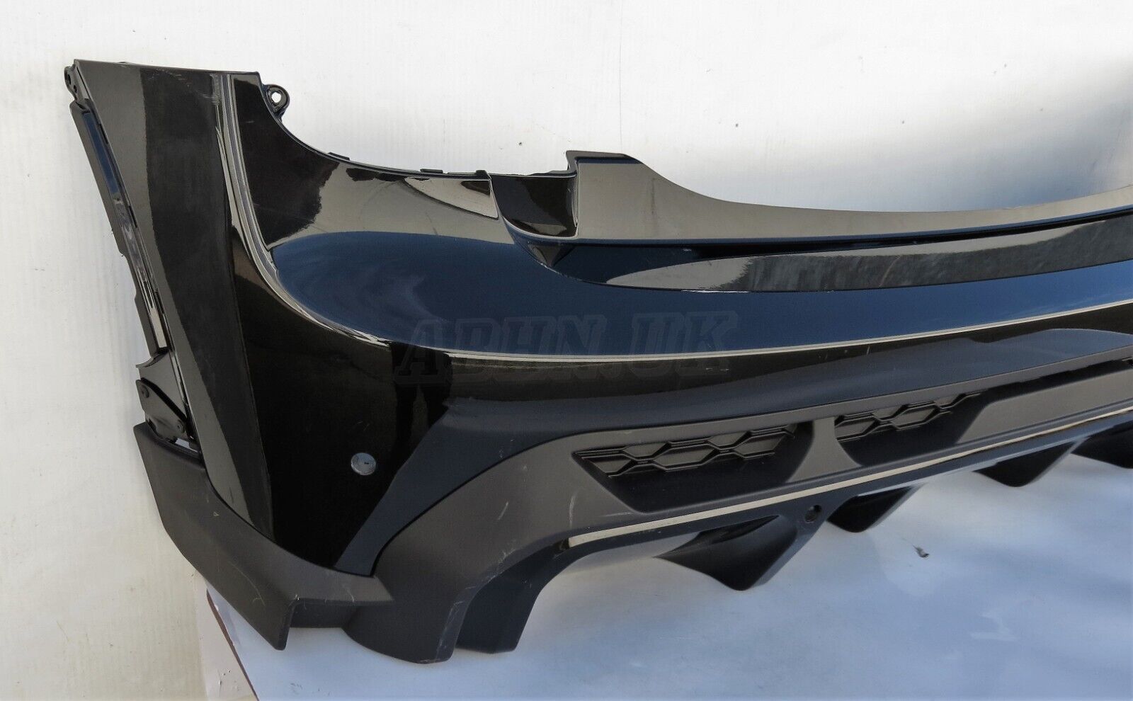 Genuine JCW rear bumper upper in Midnight Black 2 with Diffuser has got 4x PDC holes and brackets and rear fog light hole and