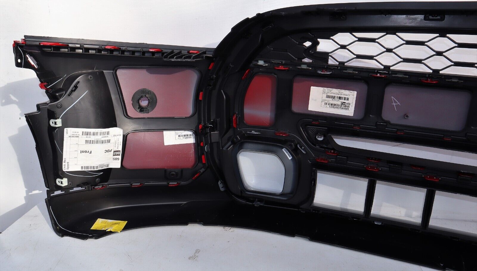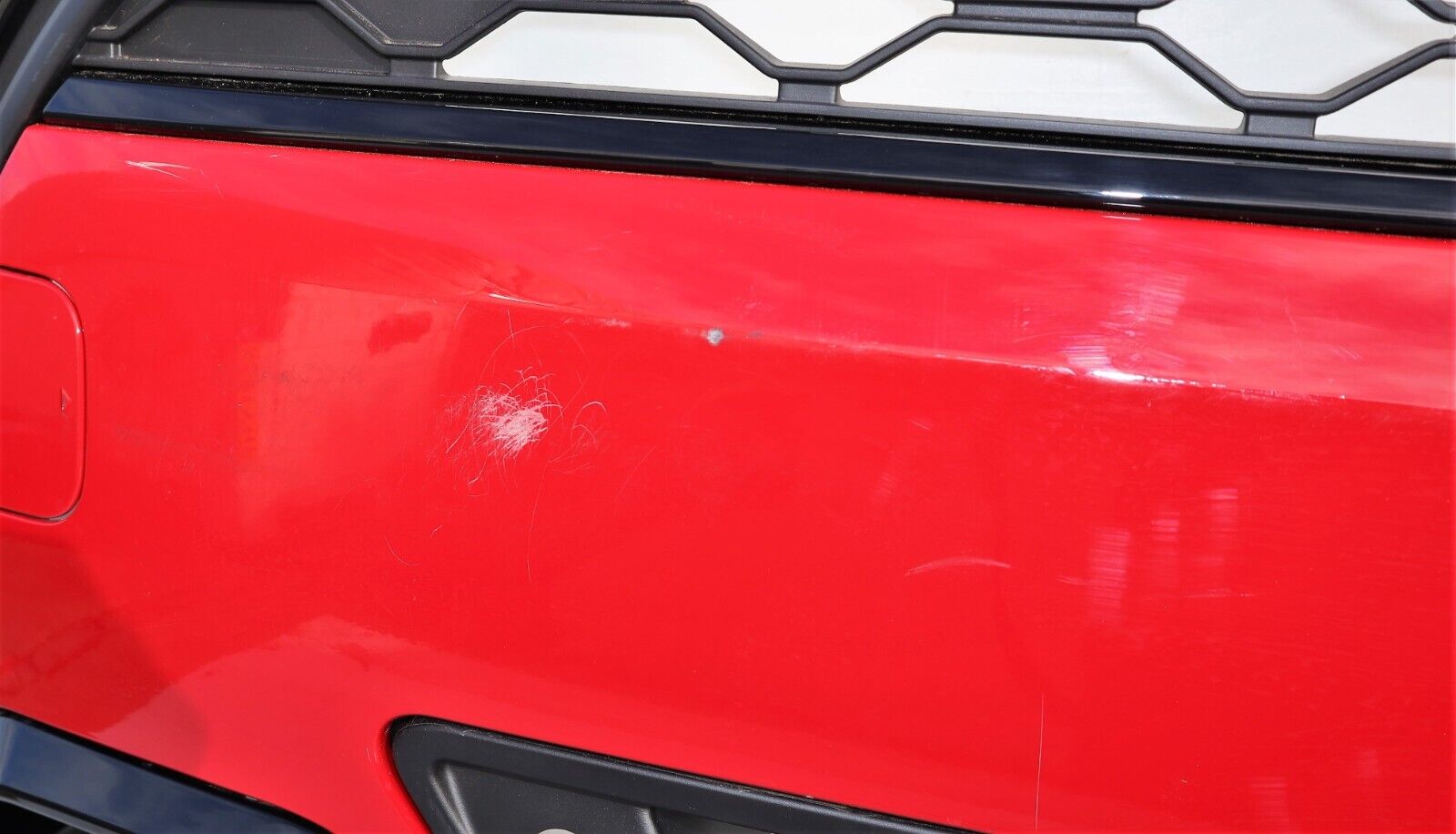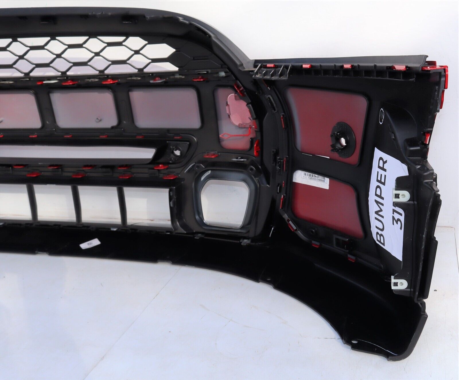 Front Complete Bumper finished in Chili Red – Complete bumper, 4 PDC Holes, Include Eye Towing Cover. Signature of Cooper S Classic and Exclusive comes with 2 sided air Ventilation finished in glossy black. The Trim surround the front grille is Gloss black.