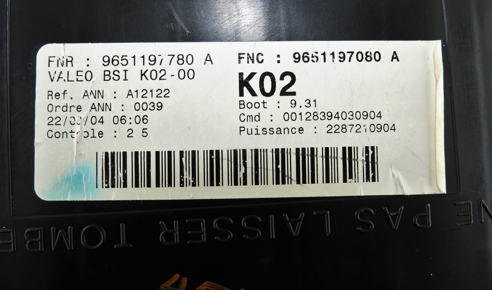 Peugeot 307 207 BSI ~K02-00 Fuse Box 9651197780 A Valeo Boot 9.31 9651197080 A