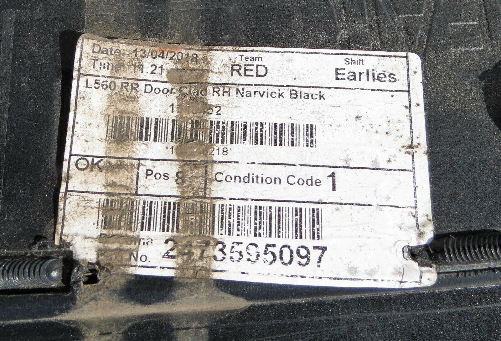 Range Rover Velar Rear Right Side Door Clad Lower Moulding Trim Black White Fuji